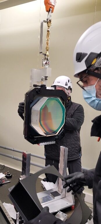 The LAM team intervened in two stages, firstly to turn over the simple (low-resolution) 20kg gratings in the 3 spectral channels of each module in November 2023, and then to turn over the gratings in the 4th medium-resolution spectral channel (50kg optics) in February 2024.