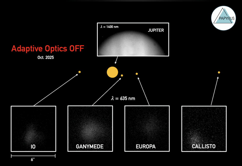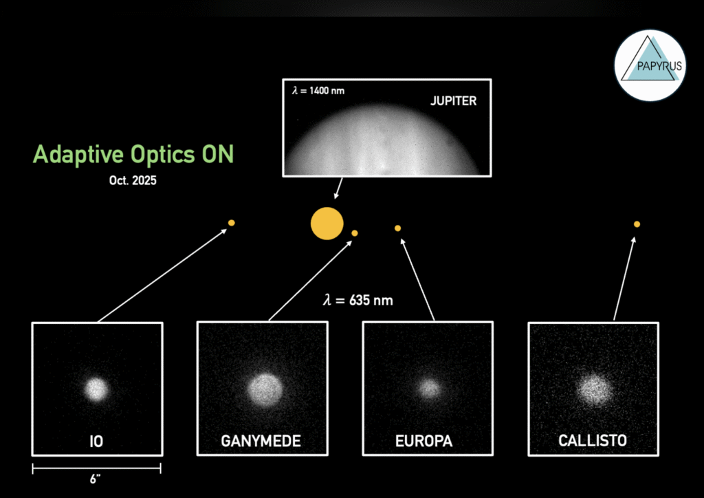 The images obtained are not only beautiful, they are also of significant scientific interest. PAPYRUS uses a pyramid wavefront sensor to measure distortions caused by atmospheric turbulence, and studying its performance on extended objects such as these moons remains an open question in adaptive optics. The analysis of this new dataset will represent an important step toward achieving high-resolution imaging of extended sources from the ground.