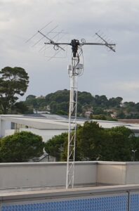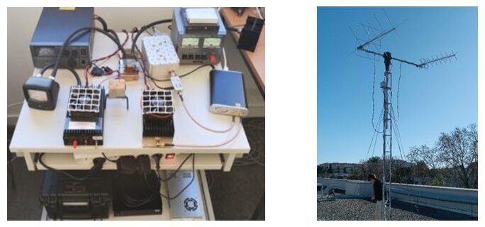 - The corresponding “Hardware”: the supporting structure and the first version of the motorized antennas, mounted on the roof of the LAM, and the associated SDR (Software Defined Radio) transmission chain, well done!