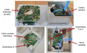 In addition to managing the dosimeters, it provides the interface with the various components integrated in the lower part of the structure: the camera, the REER circuit to be tested, the inertia wheel (AOCS), the deployable antennas and the thermal knives (all at the bottom of the satellite) for opening the solar panels.