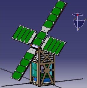 The airbrakes are still present because we had not yet changed orbit but the structure and location of the elements are better defined.CASAA-Sat at the end of Phase B
