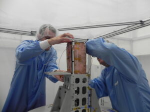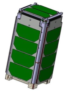The Nanosat is shown above ready to be inserted into its launcher (solar panels closed)…