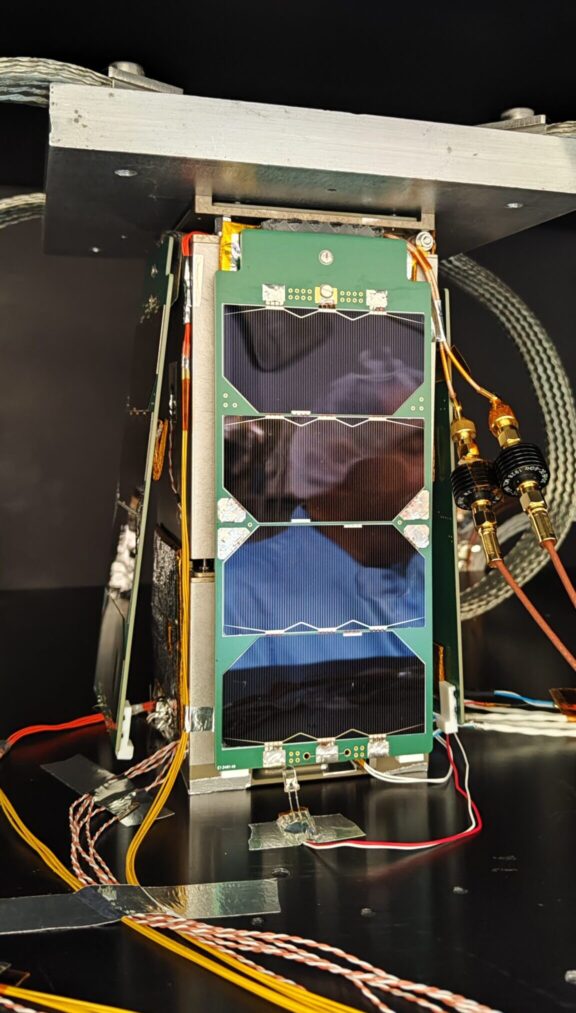 The Thermal Vacuum test equipments make it possible to reproduce the orbital constraints that the satellite will have to withstand: vacuum and temperatures. An orbit at 600 km lasts on average around a hundred minutes, a third of which is in eclipse: we subjected CASAA-Sat to cycles ranging from +50°C to -50°C for several hours. This required several adaptations for the preparation of the satellite, but also for the testing resources as well as a lot of time to devote during cycling to follow developments.