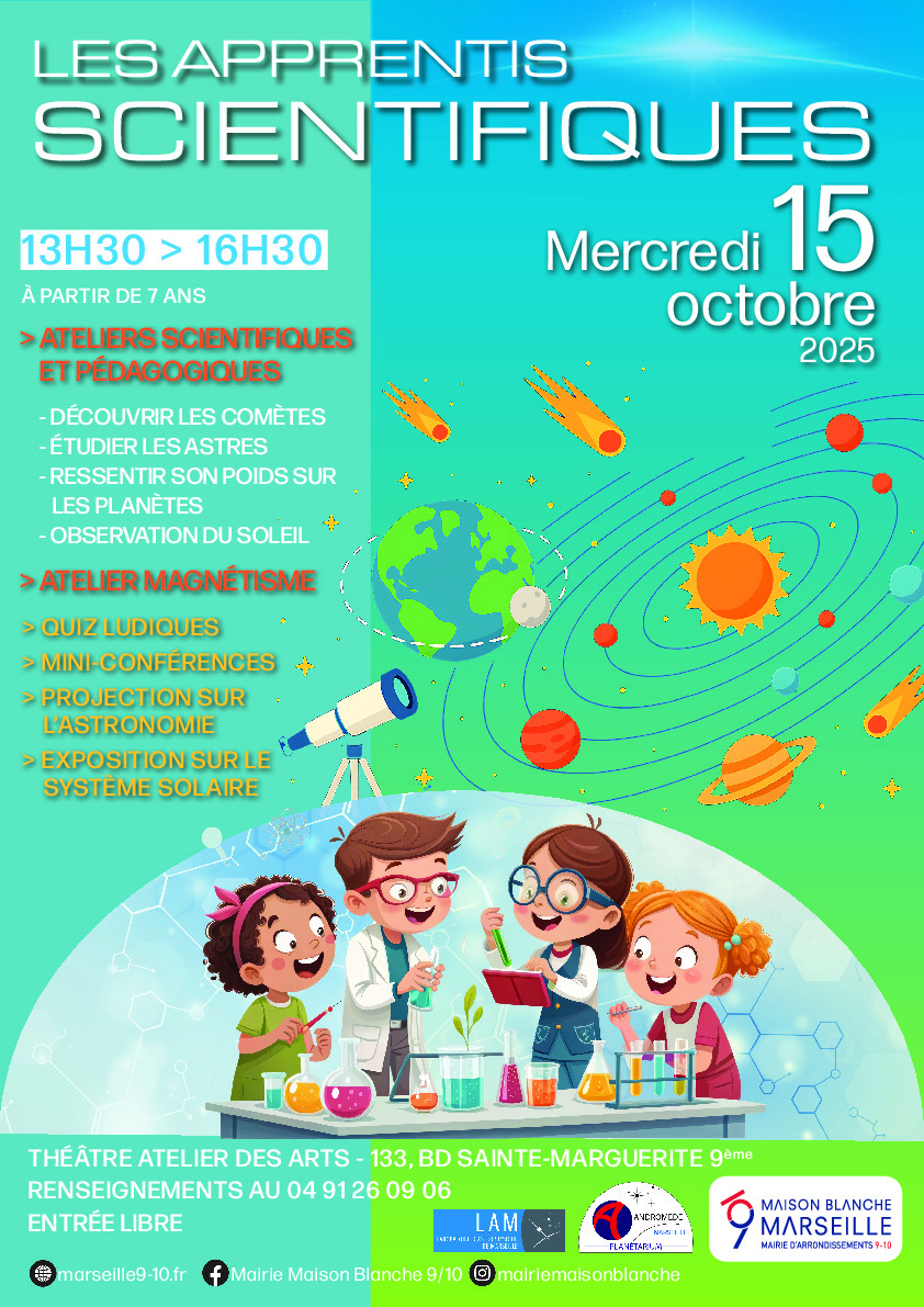 Le LAM participe à la journée science organisée par la Mairie de Marseille 9/10 au théatre Sainte Marguerite. De 10h00 à 12h30 puis 14h00 à 16h30, à destination du grand public et de centres aérés. Public conseillé : à partir de 7 ans.