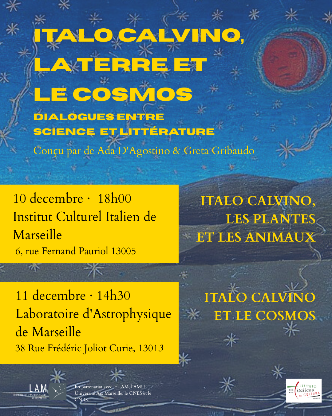 Le LAM participe avec l'Institut Culturel Italien de Marseille à deux journées de dialogue autour de l'oeuvre de Italo Calvio: “ITALO CALVINO, LA TERRE ET LE COSMOS -DIALOGUES ENTRE SCIENCE ET LITTÉRATURE”, les 10 et 11 décembre, à l'occasion de la journées italienne de l'espace, le 16 décembre. Le 11 décembre, se déroulera au LAM […]