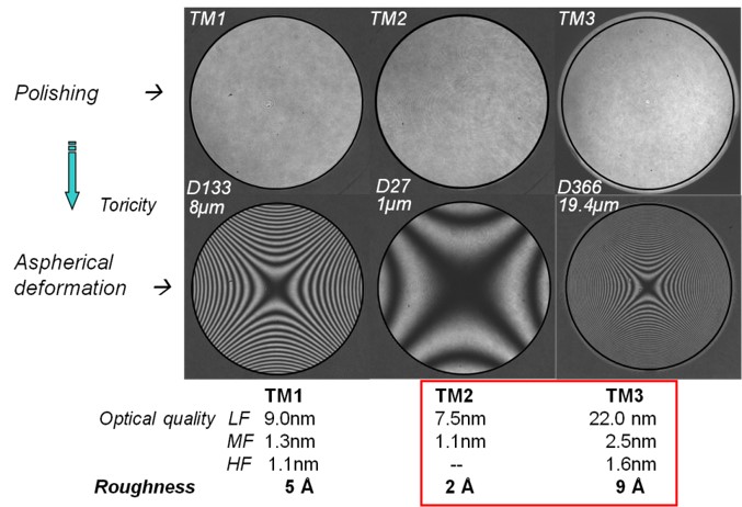 3 miroirs toriques (TM1, TM2, TM3) pour l’instrument SPHERE du VLT