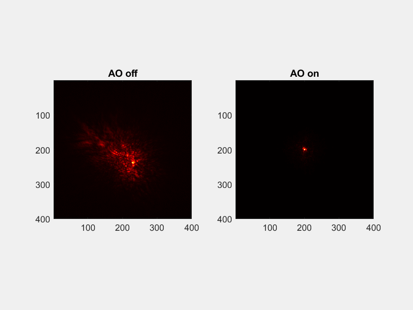 Sans la correction apportée par PAPYRUS, l’image d’une étoile (sur la gauche) est d’environ 3 secondes d’arc, mais grâce à l’Optique Adaptative de PAPYRUS, la lumière se concentre sur moins de 0.1 secondes d’arc. Un gain d’un facteur 30 sur la résolution angulaire ! Et surtout une démonstration de la robustesse de PAPYRUS pour « effacer » les effets de l’atmosphère.